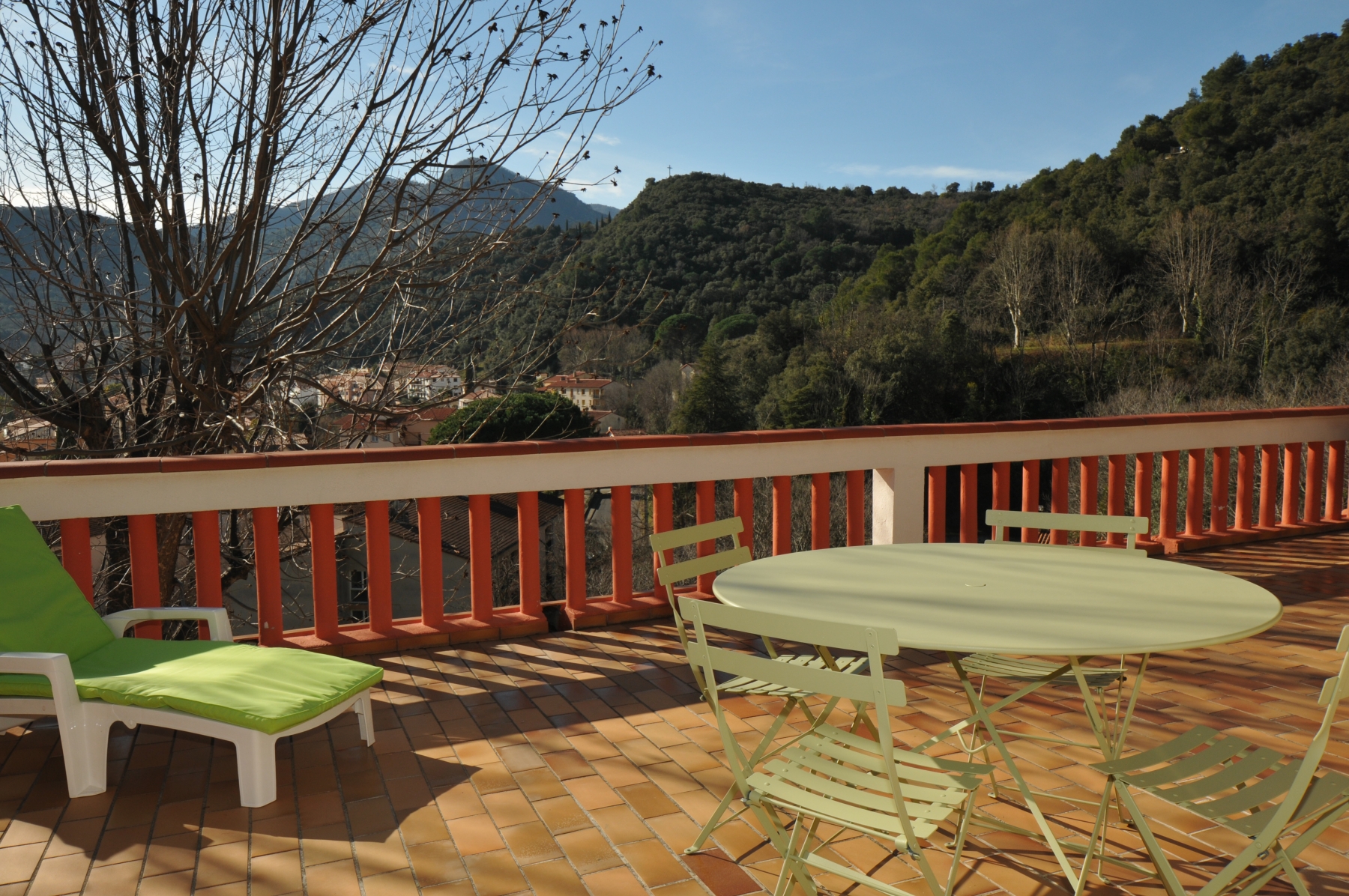 Vue imprenable, pas de vis- à – vis, très calme et ensoleillé.